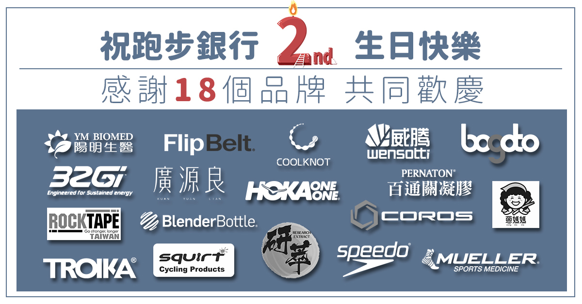 這次有18個品牌共同歡慶,部分商品進價賣也在所不惜,獻給一直支持跑步銀行的你們。