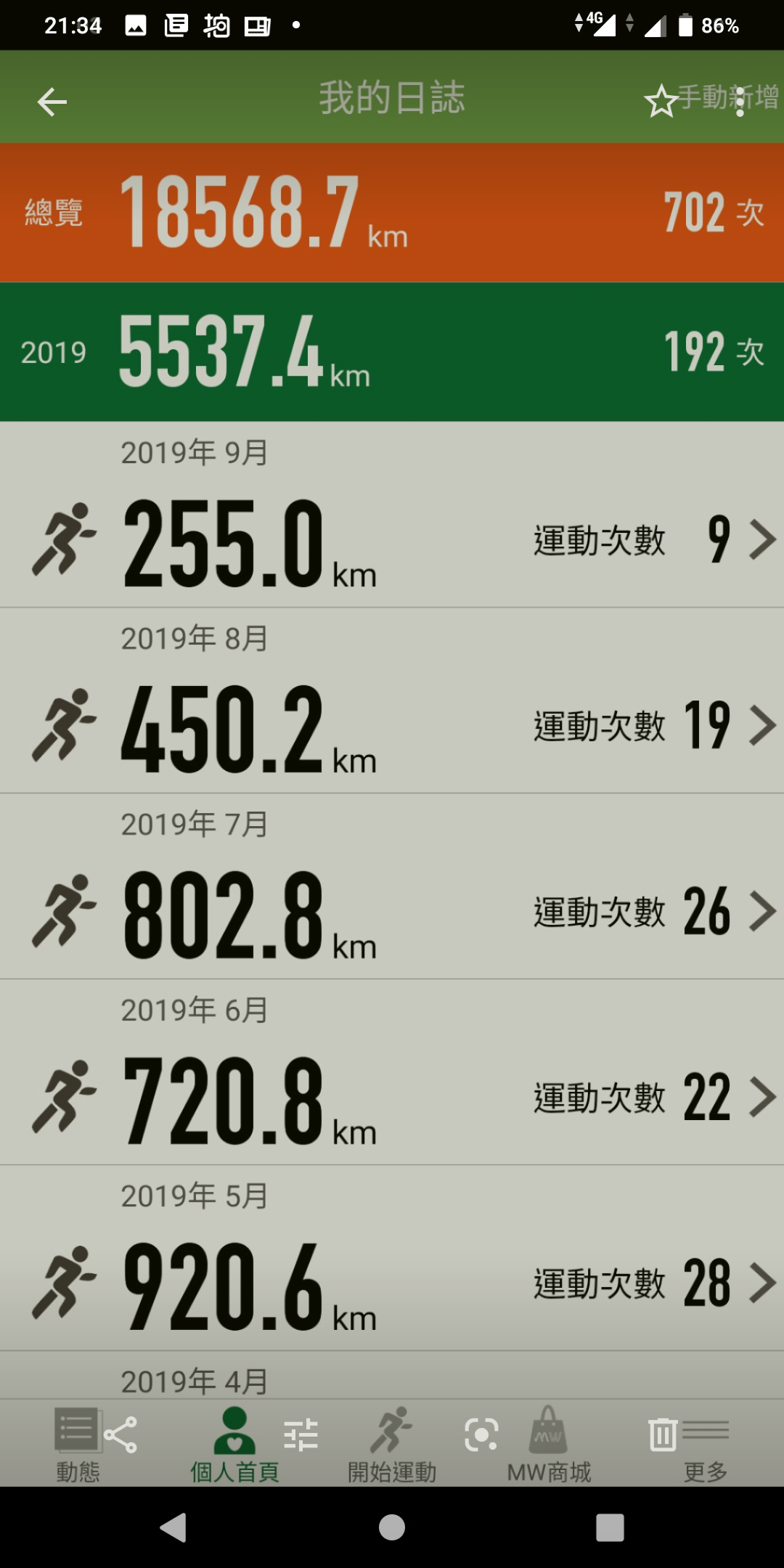 加入跑步銀行,至今累積了5500KM。