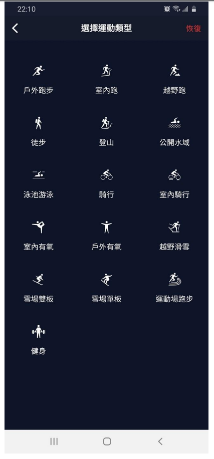 這支手錶有超多的運動類型選擇,比我玩的還雜。