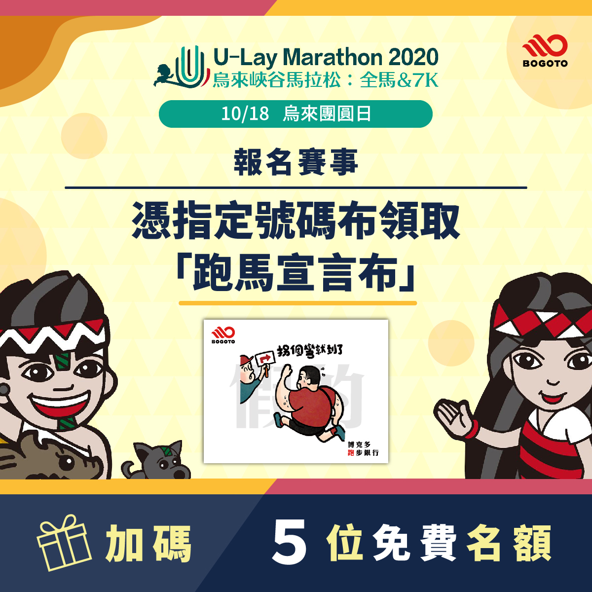 當天可憑著您的(+bogoto)號碼布,到指定攤位領取「跑馬宣言布」唷!
