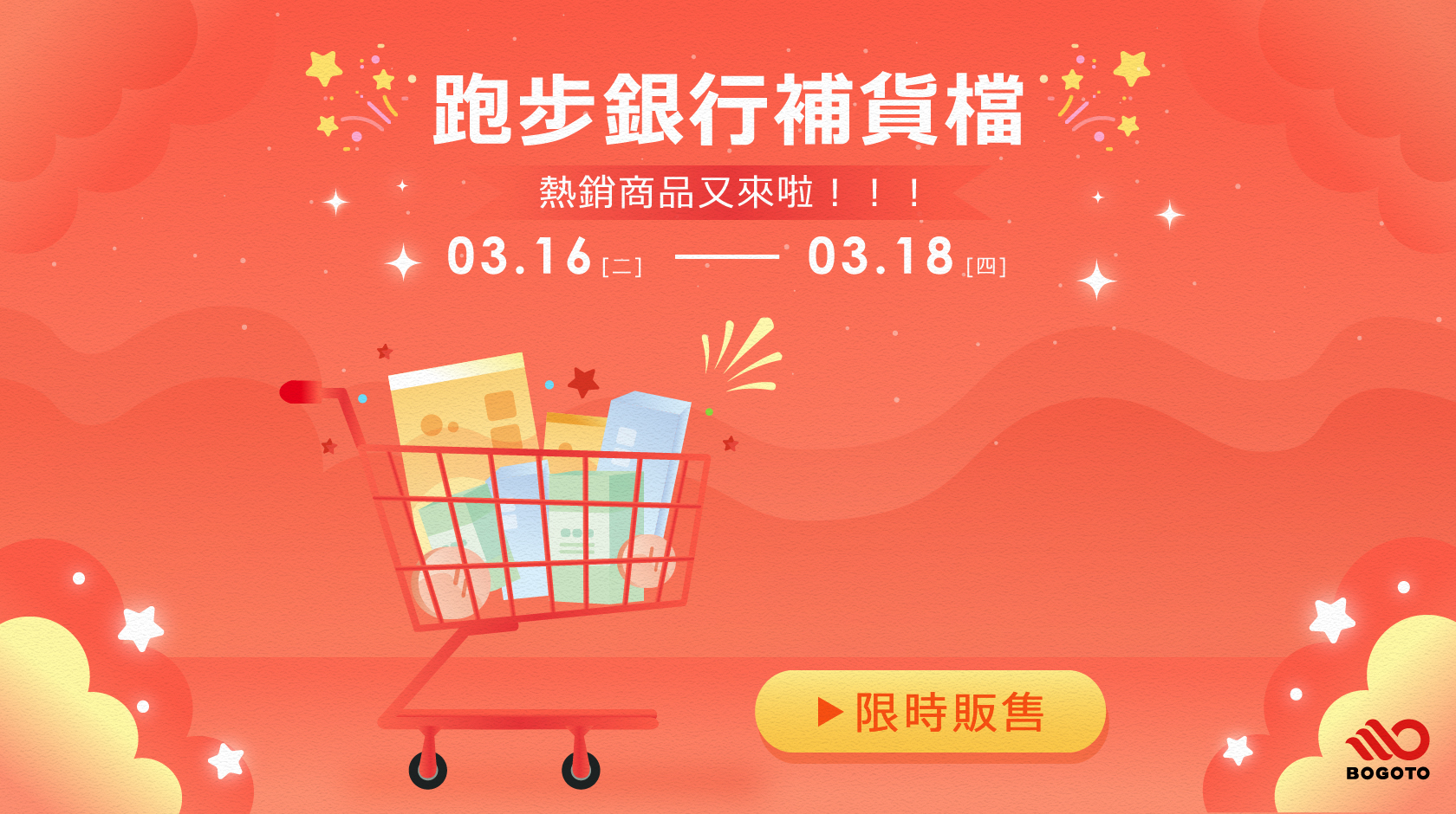 跑步銀行熱銷商品補貨囉 03/16~03/18