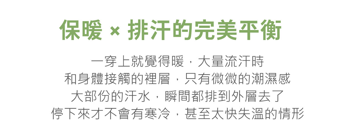 上半身在流汗後呈現微濕、卻不黏身的舒適體感;