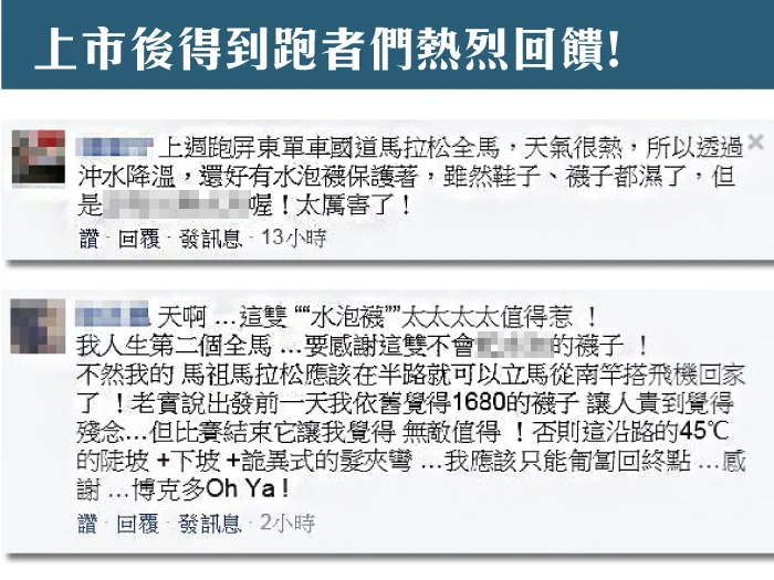 一代水泡襪售價1680元/雙,為使更多有水泡困擾的人能安心運動,二代水泡襪從編織方法和機器改良,售價降低至680元/雙。