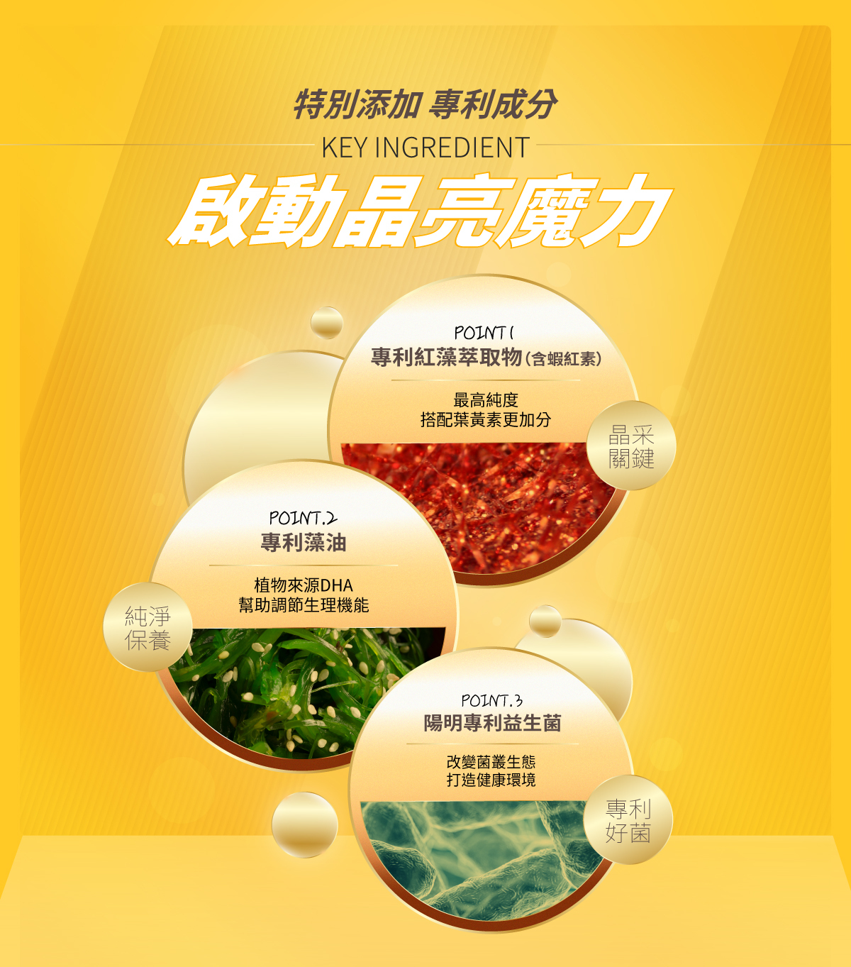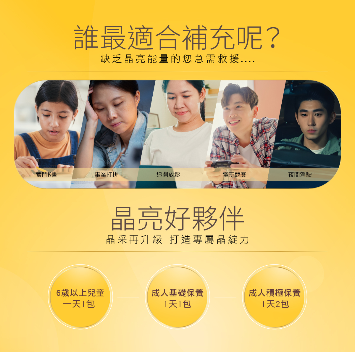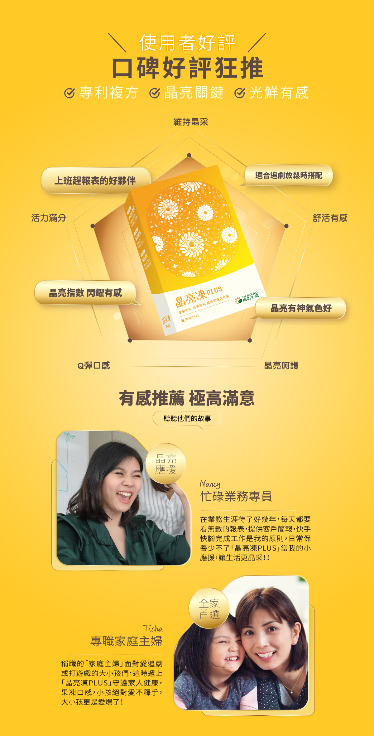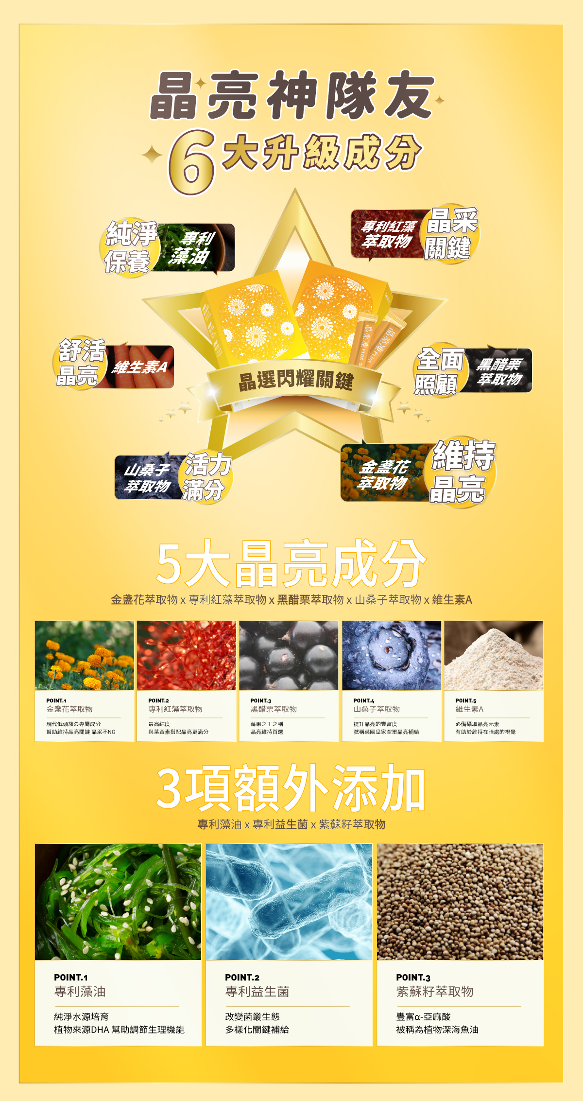 ● 晶亮凍PLUS:含有葉黃素與蝦紅素,幫助減緩用眼疲勞。