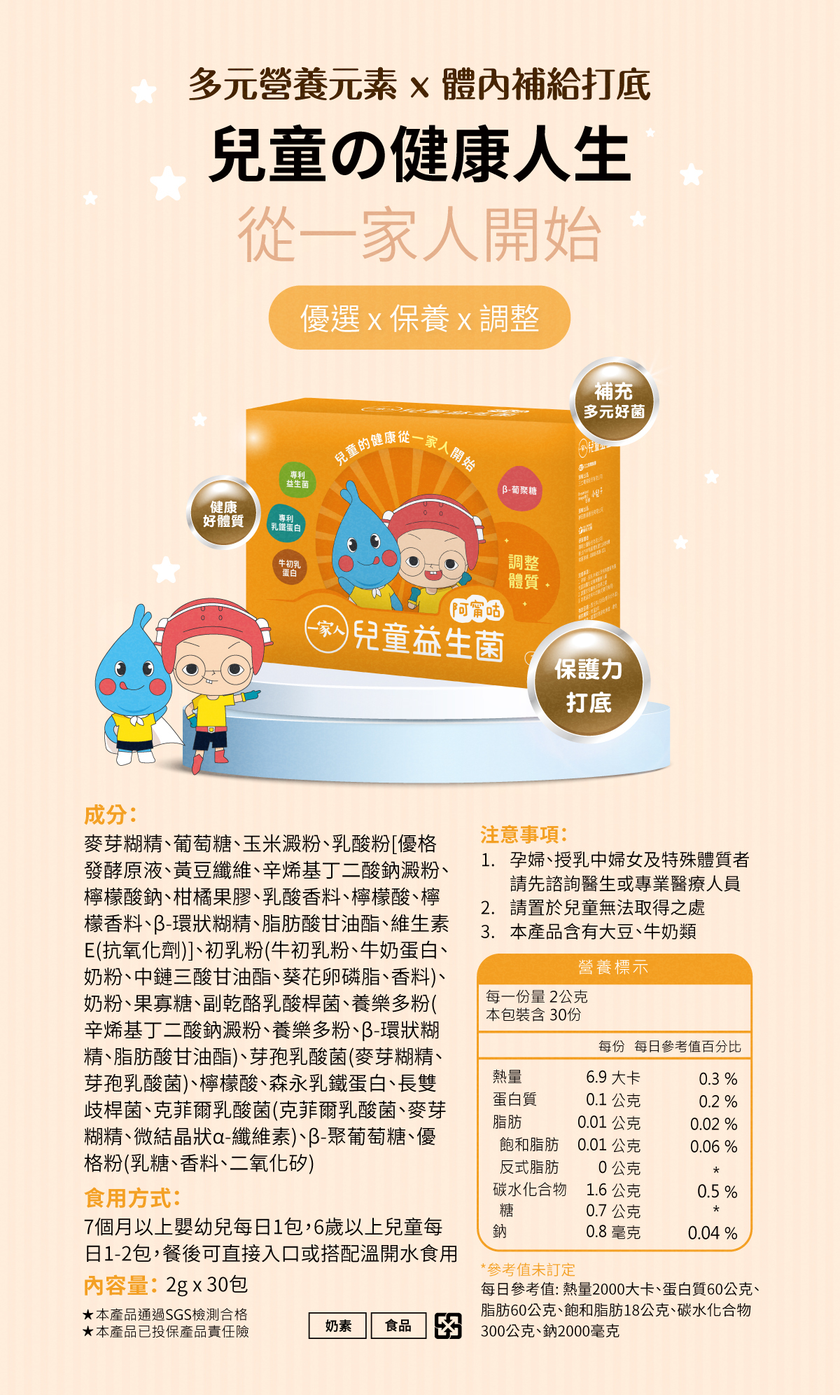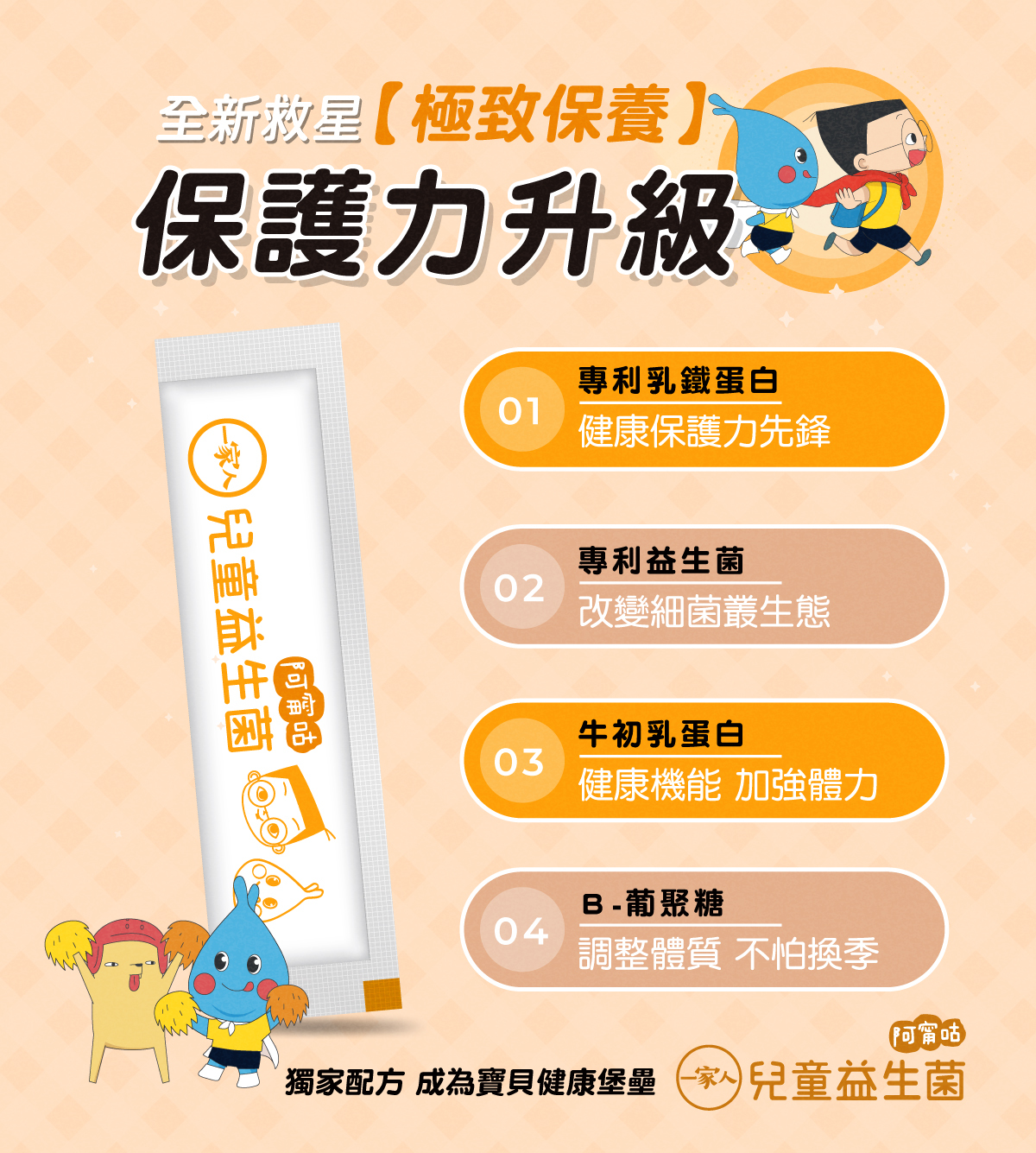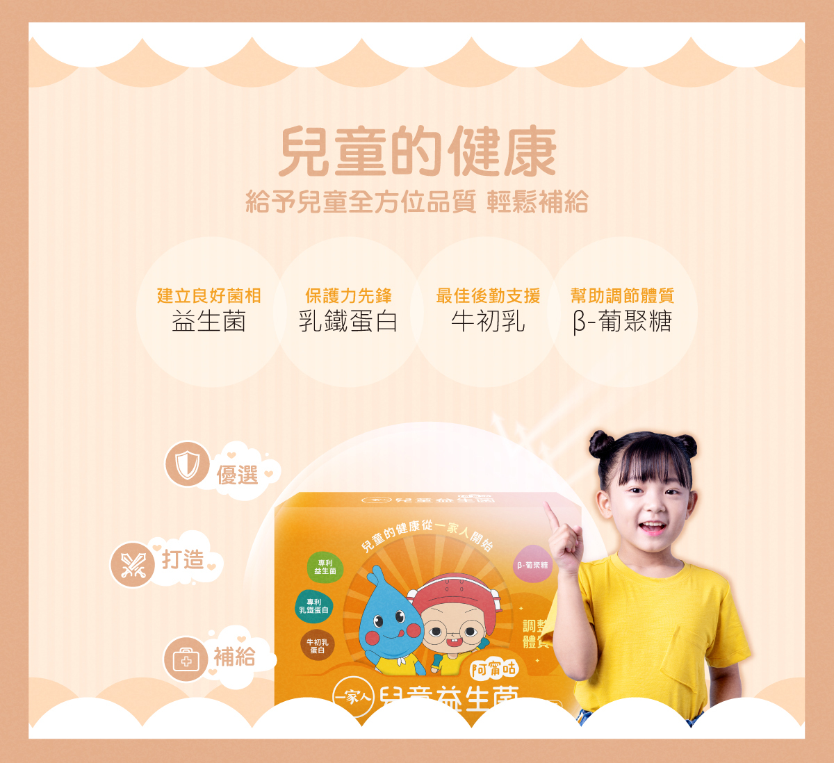 ● 專利益生菌+乳鐵蛋白+牛初乳蛋白+β-葡聚糖:全方位守護,體質打好底,給成長期孩子最全的保護力。