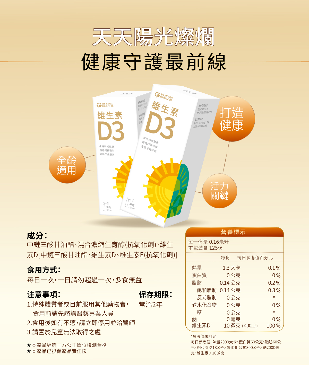 ● 吸收方便:維生素D已與油脂搭配,讓身體好利用。