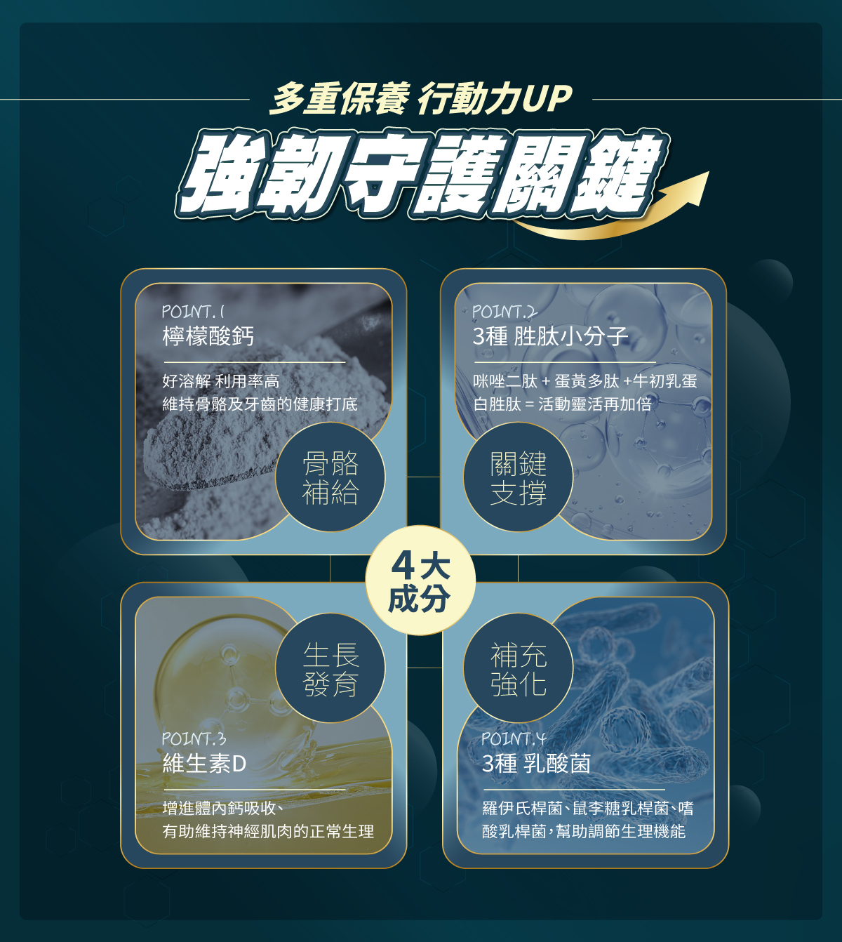 ● 3種胜肽小分子:增強營養補充,靈活加倍。