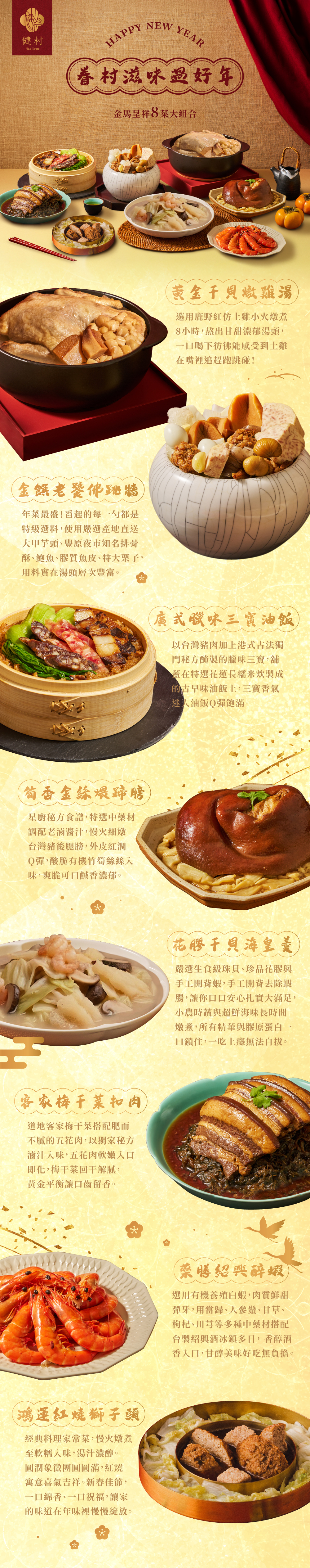 ● 年菜為預購商品,廠商於2026/1/26(一)起,依訂單順序出貨